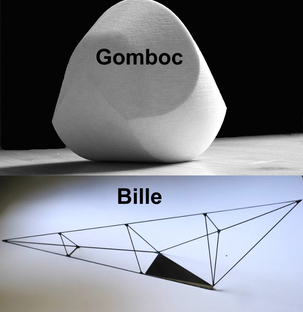 The second answer came recently in June of this year, when Gergő Almádi, Robert Dawson, and Gábor Domokos, of Gomboc fame, constructed a monostable tetrahedron, a four-faced scalene or irregular polyhedron that always lands on the same face which they named Bille: “to tip or to tilt” in Hungarian. A solution to a decades-old conjecture by John Conway, a Princeton polymath professor, with a talent for finding tangible solutions to abstract problems.