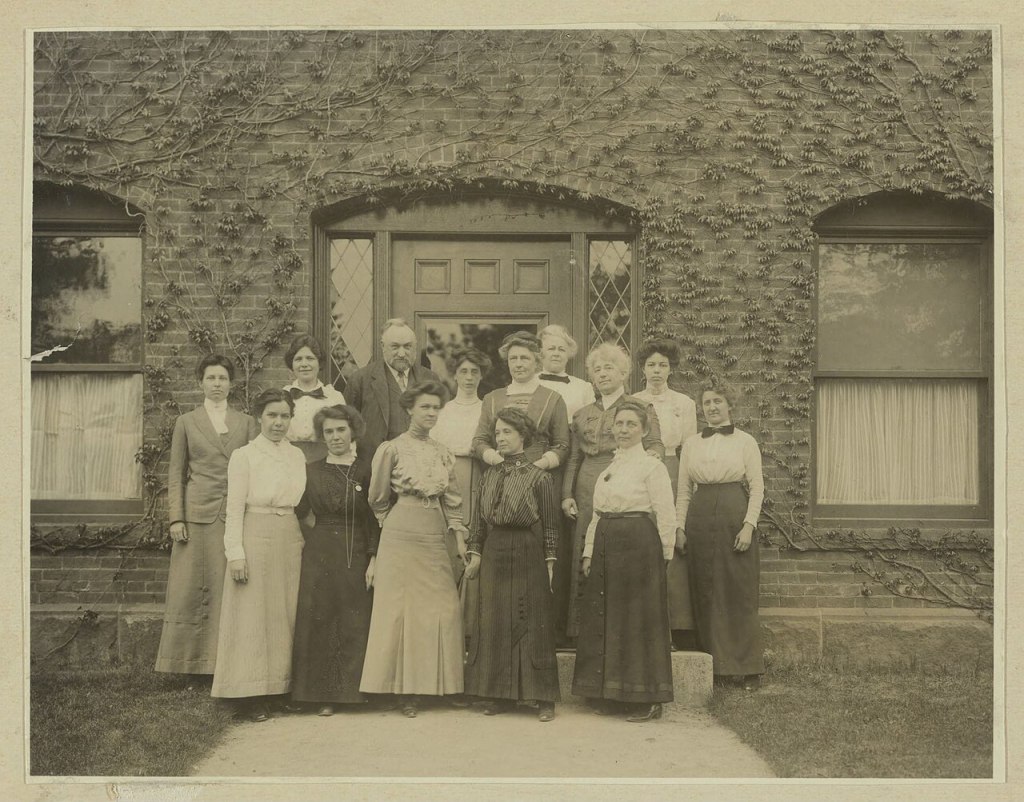 Graphic: The Harvard Computers standing in front of Building C at the Harvard College Observatory, 13 May 1913, Unknown author. Public Domain