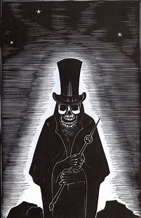 (The woodcut in the upper right is a self-portrait of Ward as a young man. The skeleton in the top hat is from his first novel, ‘Gods’ Man’.)