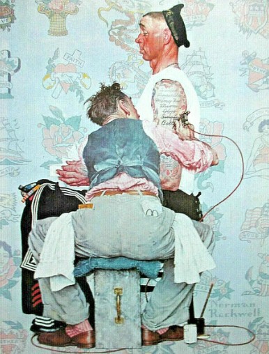 Source: The Norman Rockwell Treasury by Thomas S. Buechner, 1979. Norman Rockwell Museum. Graphic: The Tattooist by Norman Rockwell, 1944, The Brooklyn Museum.