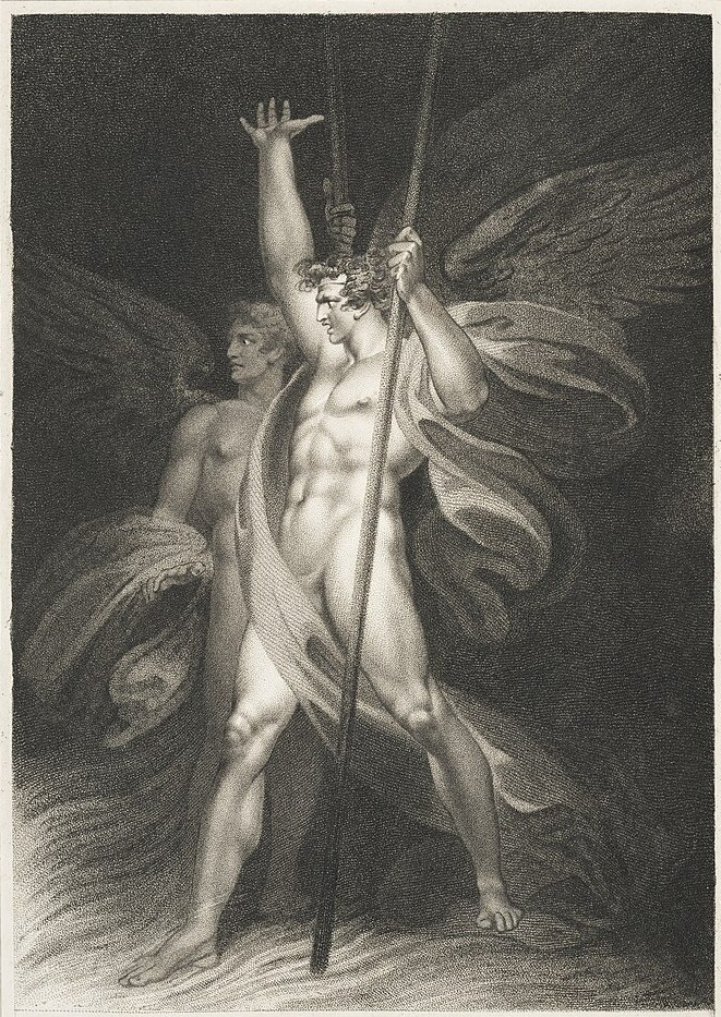 Graphic: Satan and Beelzebub by William Hayley, Jean Pierre Simon, Richard Westall: Paradise Lost. Public Domain.